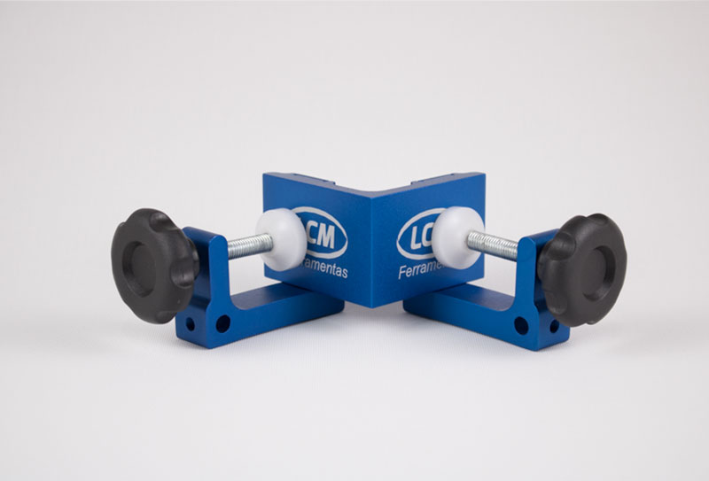 O gabarito morsa foi desenvolvido no intuito de efetuar o travamento de duas laminas em 90 graus facilitando a fixação das laminas por parafusos ou colagem com cavilha. Ideal para montagem de nichos quadrado ou retangular, montagem em T, travamento de prateleiras, montagem de gavetas.